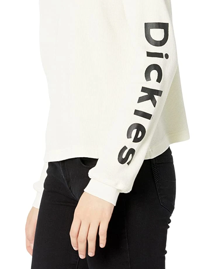 - Crafted for style and comfort, the Dickies® Juniors Long Sleeve Thermal features a rounded neckine, long sleeved with fitted cuffs and script logo design on side, and a straight hemline.