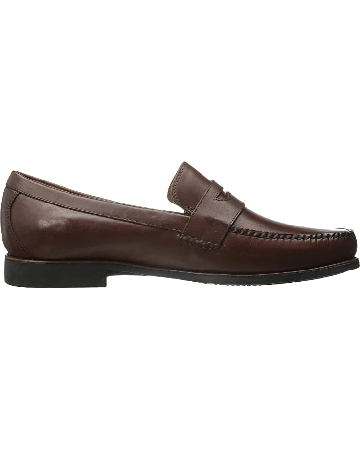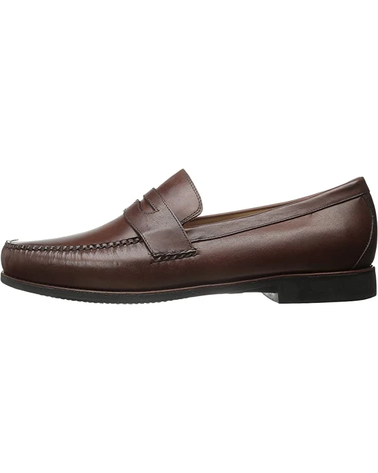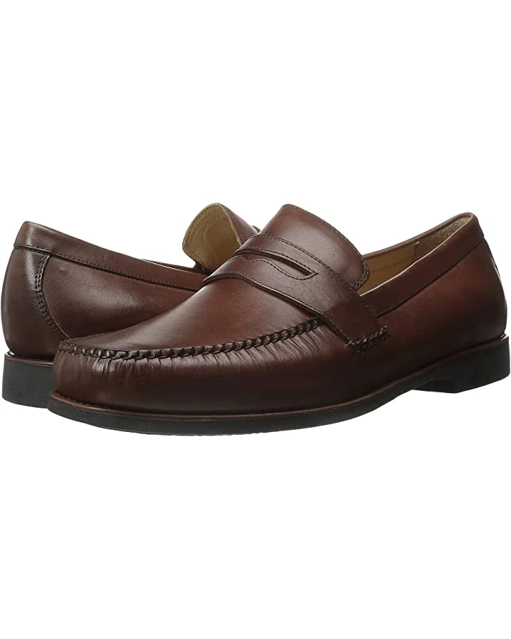 - Premium leather upper features a classic penny strap and handsewn construction.