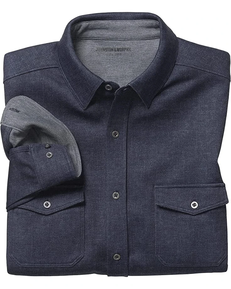 - Create cool, casual looks with the Johnston & Murphy® Button Front Knit Shirt.