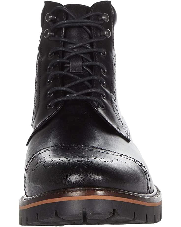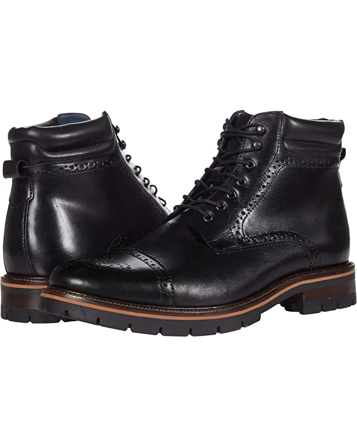 - The Johnston & Murphy® Cody Cap Toe Boot is made of full grain leather and features a lace closure, padded collar, and brogue details.