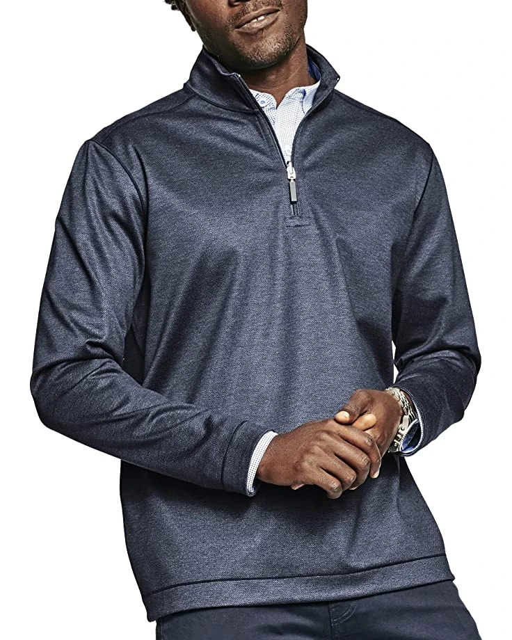 - Breathable poly-blend sweater features a quarter-length zip with a stand collar.